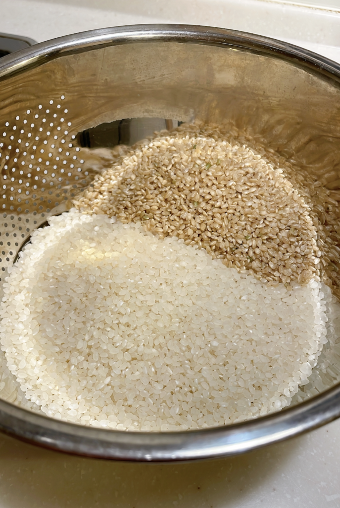 私の食べ方のお気に入りは、精米と玄米を混ぜて炊くこと。